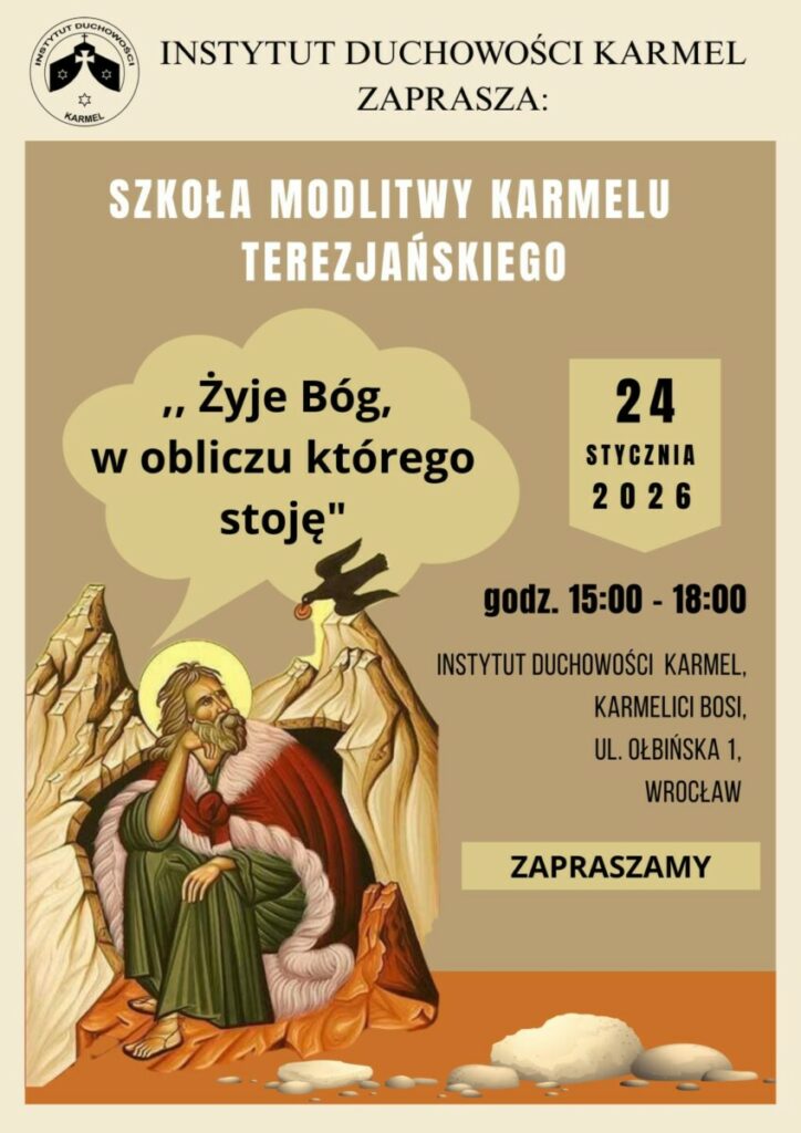 Myślą przewodnią najbliższej Szkoły Modlitwy Karmelu Terezjańskiego będą słowa proroka Eliasza: „Żyje Bóg, w obliczu którego stoję”.