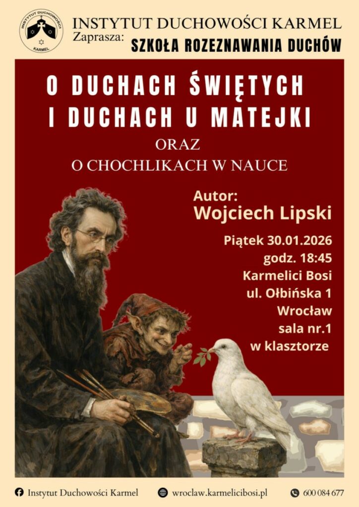 W trakcie najbliższej Szkoły Rozeznawania Duchów posłuchamy o „Duchach świętych i duchach u Matejki oraz o chochlikach w nauce”. Temat przybliży nam Wojciech Lipski.